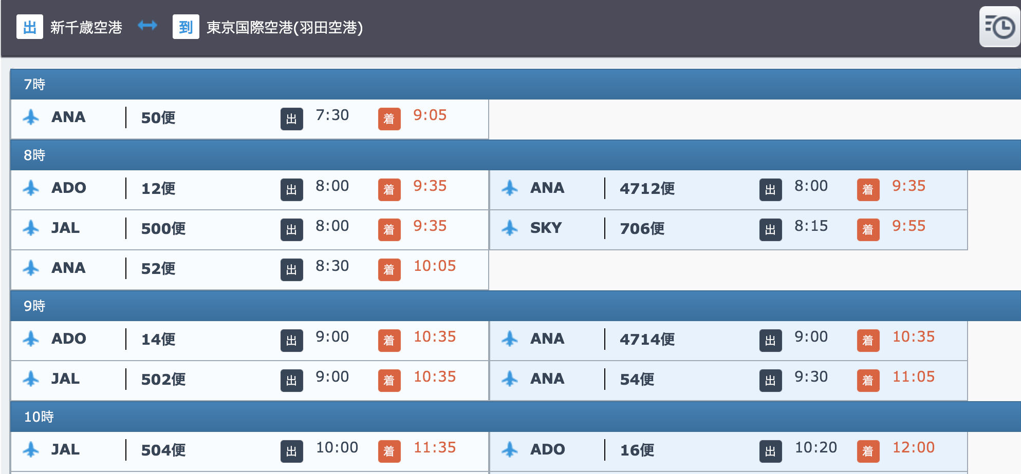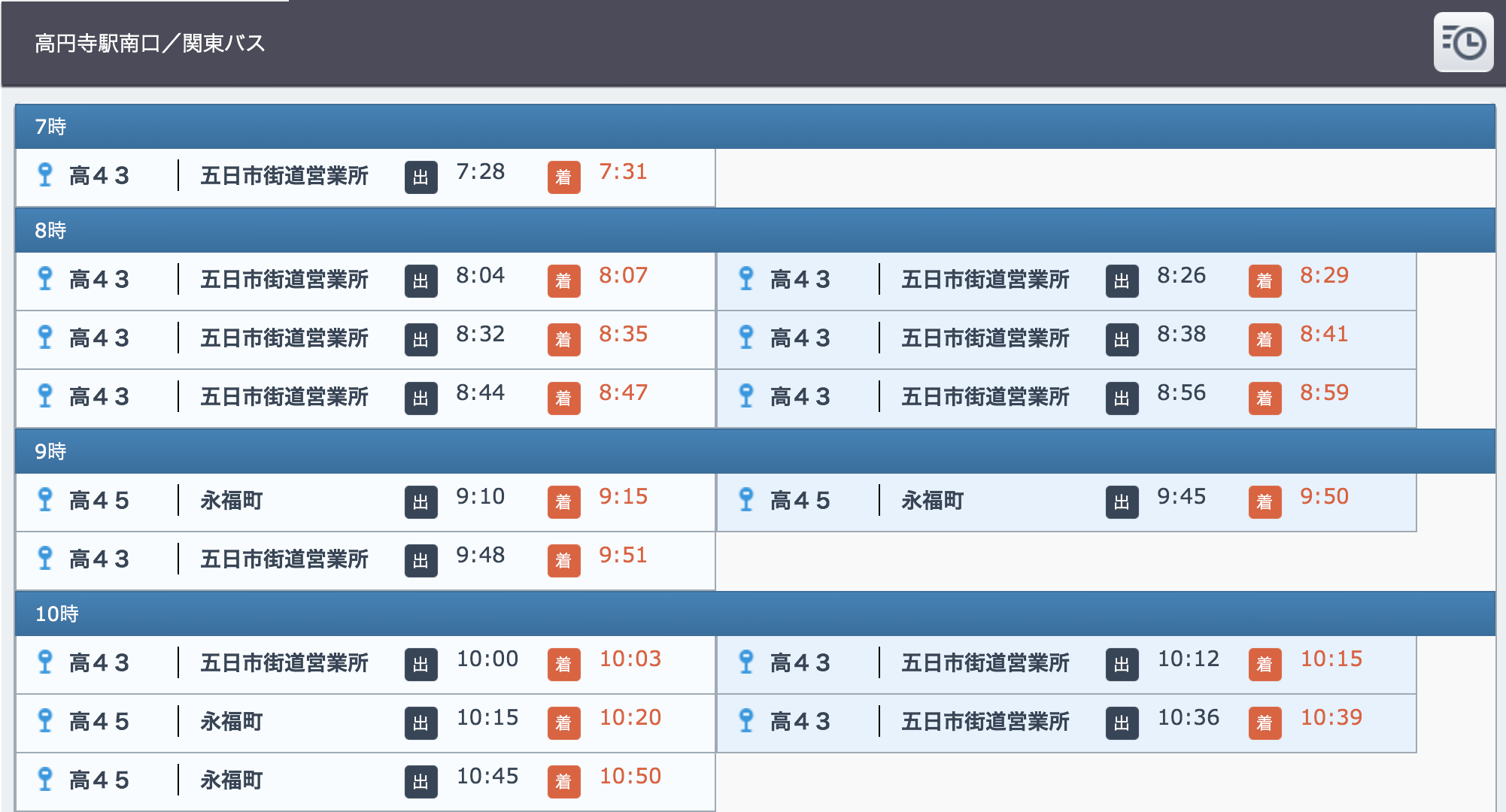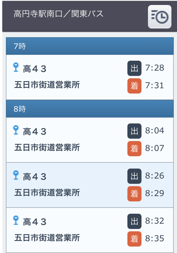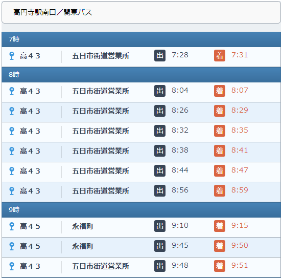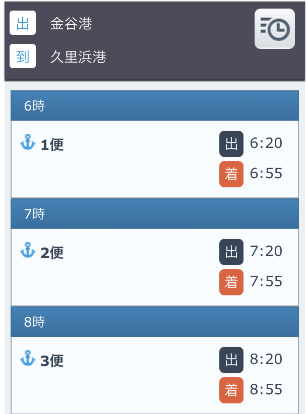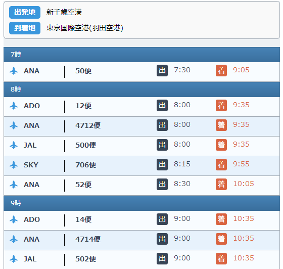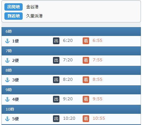 2区間の時刻表を表示します。 空路、および、海路の場合は区間名を指定します。 バスの場合はバス停を2箇所指定します。 鉄道の場合は探索結果のシリアライズデータを利用します。 なお、空路、および、海路の場合は方向の指定も必要です。