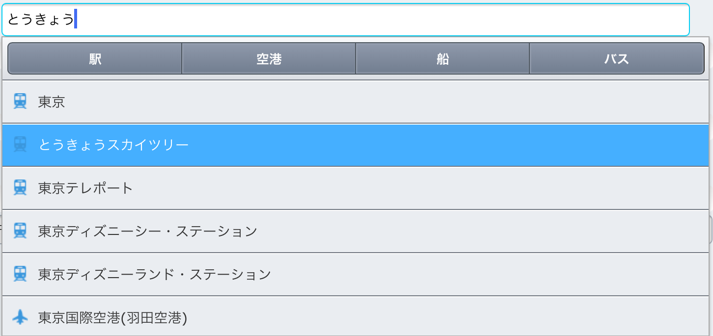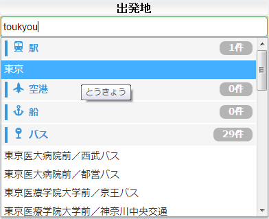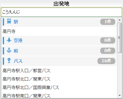 入力フォームを設置して駅名の検索が行えます。 また、確定した駅名を取得することも可能です。